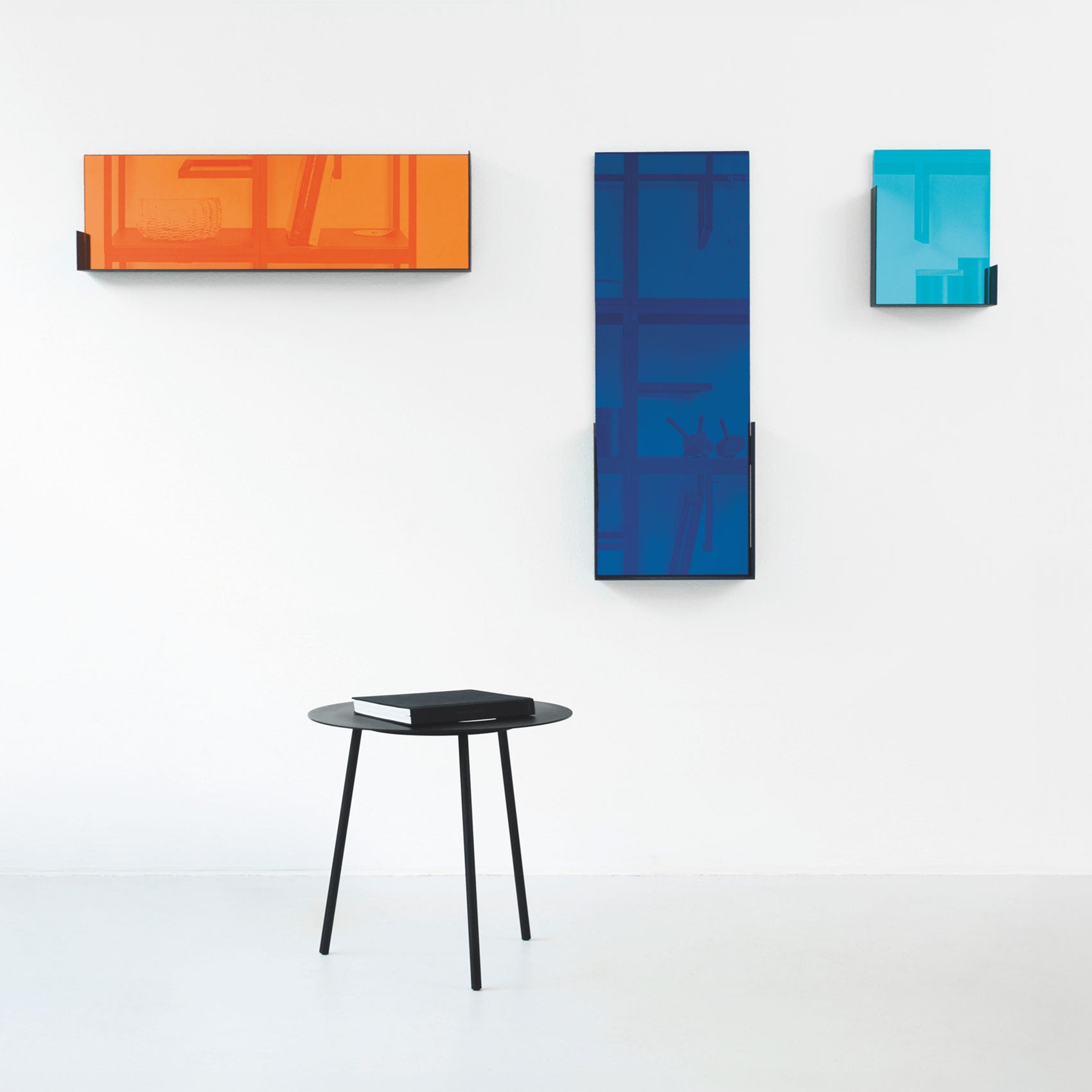 The Mood collection consists of three wall mirrors in unique colors and sizes. The metal frame envelops the mirror surface, allowing it to be used as a shelf for simple objects, and the color of the mirror itself becomes an interior element, creating a unique atmosphere for the space.