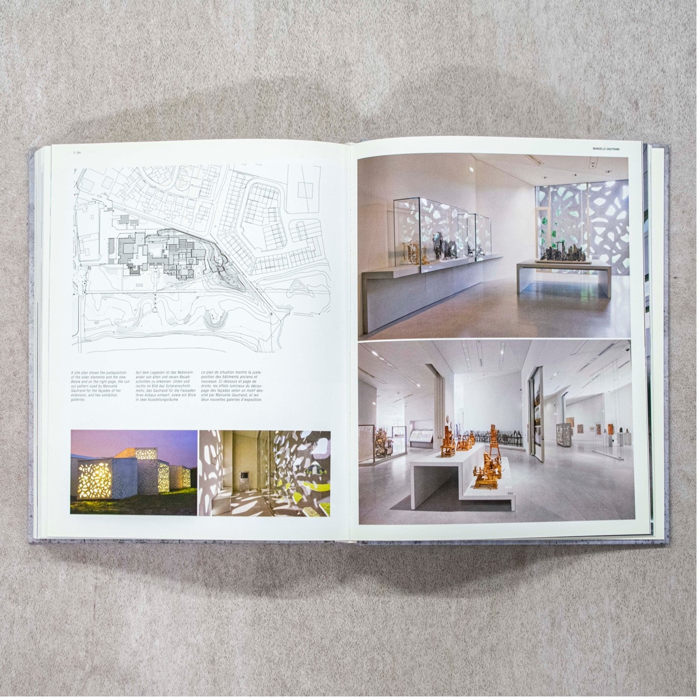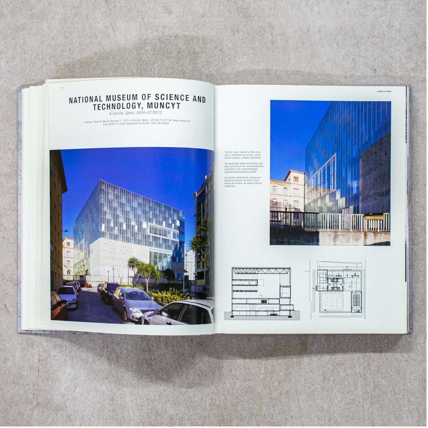 英語とドイツ語、フランス語で構成された膨大なテキスト、建築家の考えを覗くことができる図面、コンクリートで完成した壮大さをそっくり感じられる現場写真を通じて、様々な魅力を感じてみてください。