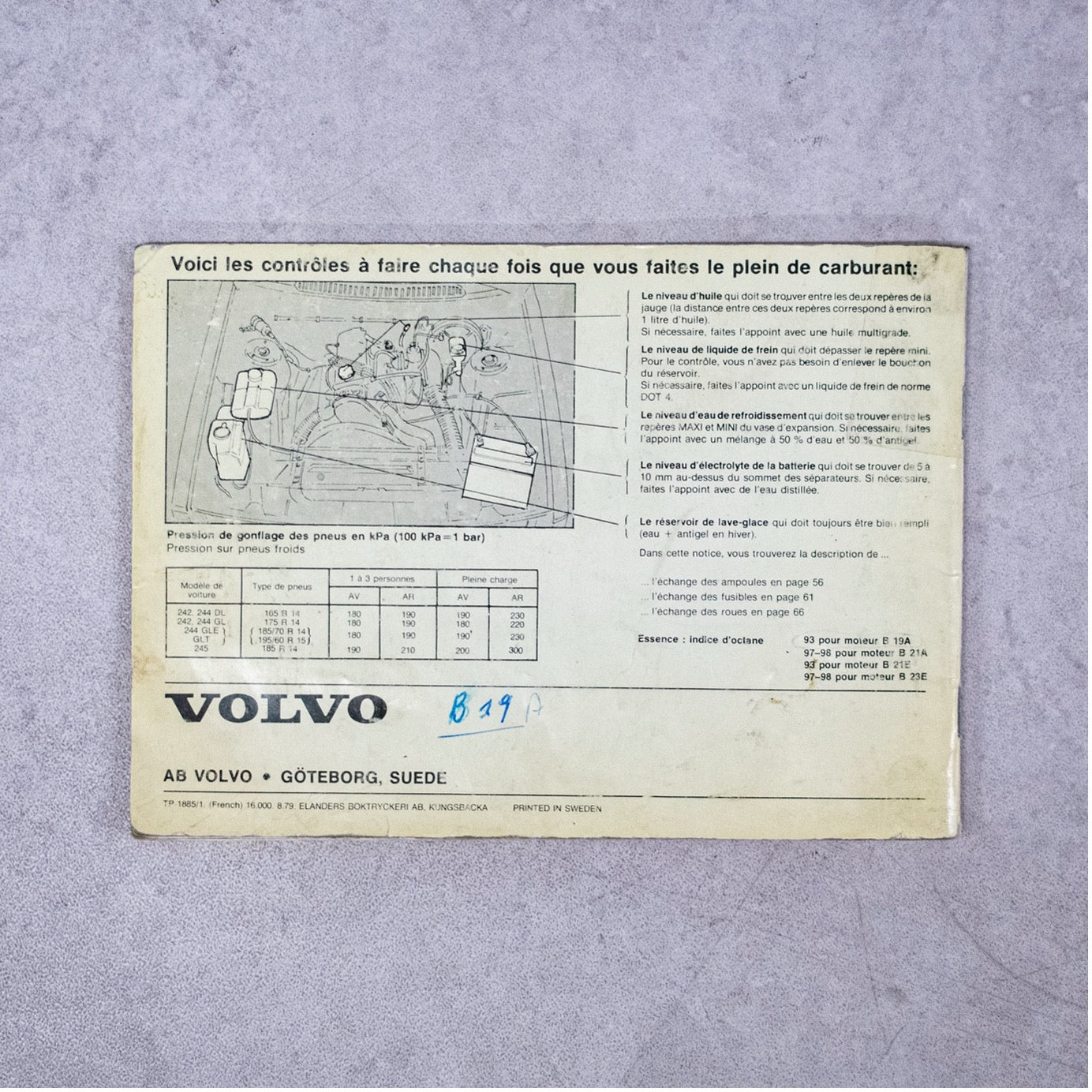 1980年式ボルボ240モデルのフランス語版オーナー用説明書です。