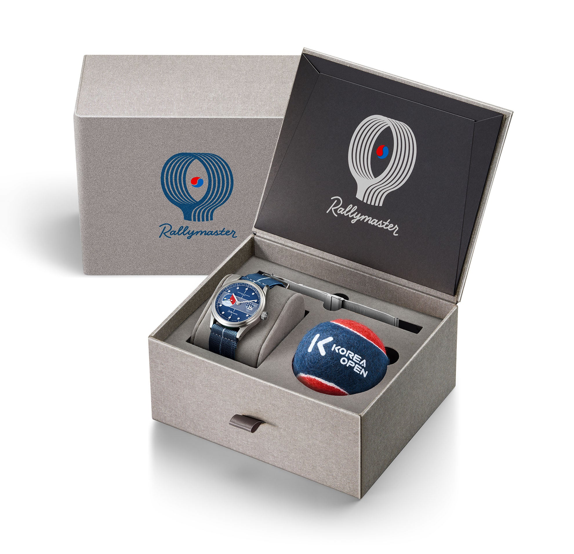 The new Rallymaster Korea Open is a limited run of only 100 pieces and is presented in a special box with a personalized tennis ball plus an extra bracelet: a two-piece stretchy elastic strap and a steel mesh bracelet (both with a quick-release system) provide on-court, off-court versatility. Also the best at the end: any buyer will be granted two tickets for the final of the 2025 Korea Open!