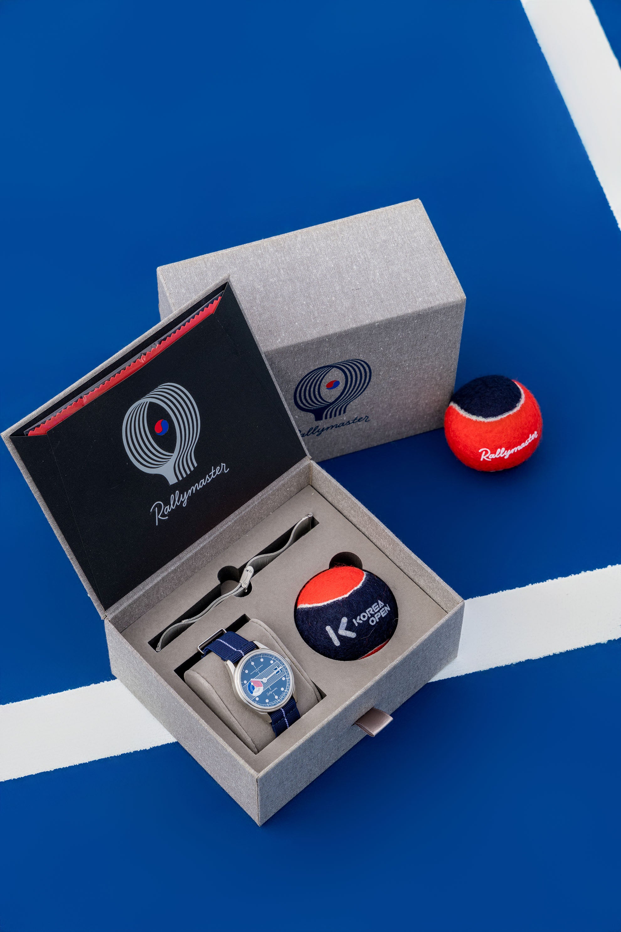 We have conceived for the occasion of being the Official Timekeeper of the Korea Open 2024 a new commemorative iteration of our iconic Rallymaster, a tennis-inspired timepiece born from a collaboration with award winning Racquet magazine and designed by Carlton DeWoody.